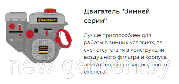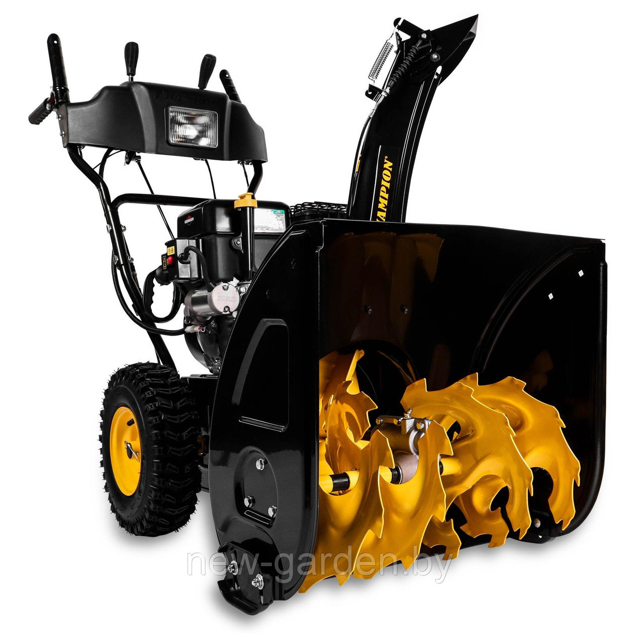 CHAMPION ST656BS — имеет двухступенчатую систему шнеков. Предназначен для расчистки большой территории. Оснащен бензиновым 4-х тактным двигателем Briggs&Stratton, который характеризуется надежностью и высокой производительностью. Поворот желоба осуществляется на 180 градусов при помощи рычага. Угол выброса снега регулируется также дистанционно. Для комфортной работы в непогоду снегоуборщик оборудован фарой.