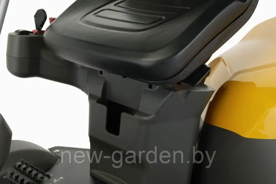 Удобство оператора обеспечивают эргономичное сиденье с поддержкой поясницы, простор для ног и компактная боковая панель с интуитивно понятными элементами управления, включая электронный регулятор высоты среза.