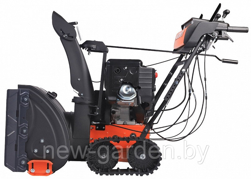 Снегоуборщик бензиновый PATRIOT СИБИРЬ 110CET – мощное снегоуборочное оборудование для эффективной работы на территориях с большой площадью. Самоходный снегоуборщик имеет гусеничный тип перемещения с функцией разворота при помощи блокировки дифференциала. Такая конструкция обеспечивает надежное сцепление даже в гололед. Ширина захвата за один проход составляет 710 мм, а высота убираемого снежного покрова – 530 мм. В устройстве агрегата предусмотрена возможность регулировки направления выброса снега в необходимом месте с углом поворота и направлением выброса 190/70 градусов. Двухступенчатая система очистки состоит шнеков, которые разбивают даже твердый слежавшийся снег. Металлические шнеки имеют диаметр 300 мм.