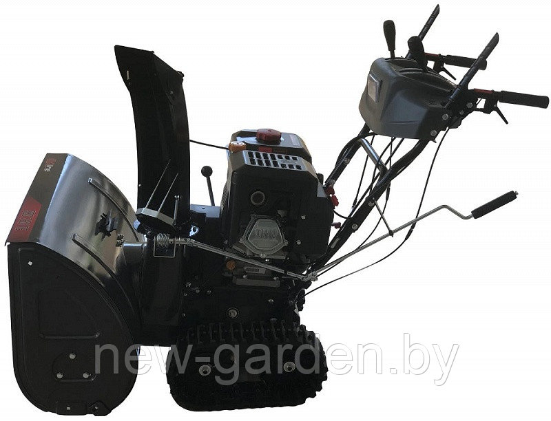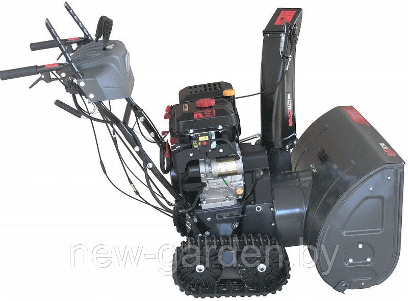 Передвигается агрегат с помощью гусениц, благодаря такой системе, он способен работать на наклонных или неровных поверхностях. Разработчики предусмотрели возможность отключения блокировки дифференциала, что резко повышает маневренность и проходимость снегоуборщика. Это важный момент, так как масса техники достаточно большая – 130 кг, перемещать агрегат вручную затруднительно.