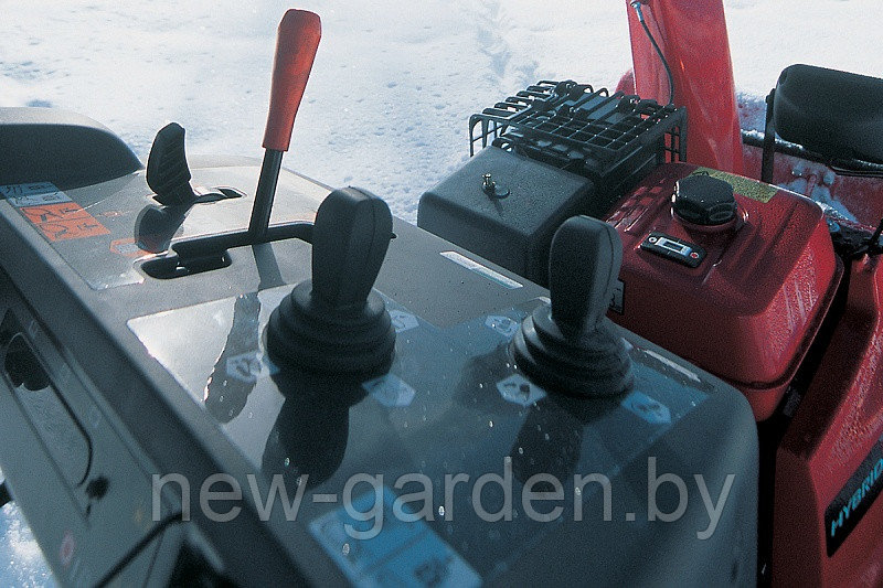 Снегоуборщик бензиновый Honda HSM 1390 IKZE характеризуется применением гибридной технологии, при которой гусеницы приводятся в движение двумя независимыми электродвигателями, а шнеки вращаются за счет работы бензинового двигателя. Такая технология способствует повышению производительности и экономии расхода топлива. Встроенная двухступенчатая система выброса снега с дальностью 19 метров, увеличенные показатели ширины и высоты захвата снега до 92 и 58 см соответственно позволяют убирать до 83 тонн снега за час. Продолжительность автономной работы снегоуборщика составляет 2,3 часа при объеме топливного бака 5,7 л. Оборудование дополнительно имеет функции освещения при помощи фары с возможностью выбора ближнего и дальнего света, разворота на месте на 360 градусов, электрического управления желобом регулировки направления сбрасывания снега, применения системы самодиагностики неисправностей.