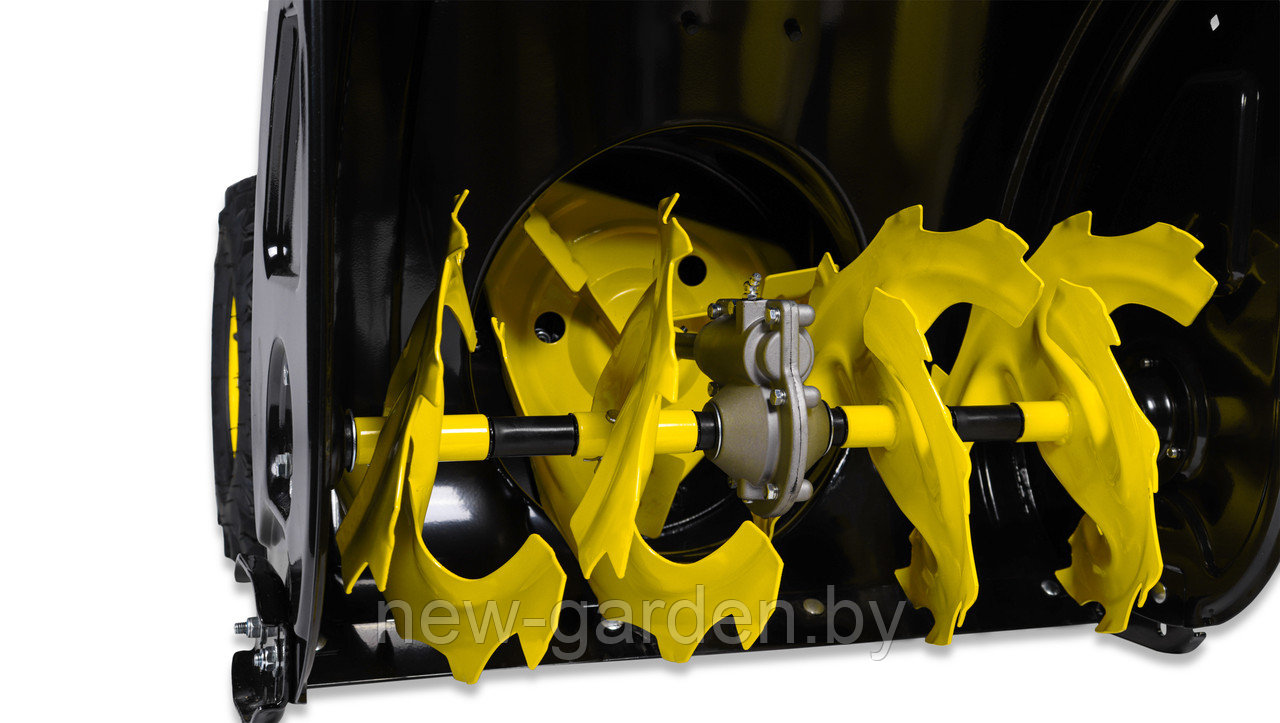 - Прочный зазубренный шнек: эффективно справляется с плотным снегом и ледяной коркой, позволяя легко очищать даже сложные участки.